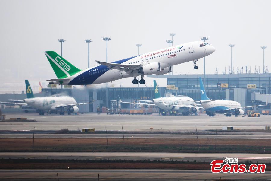 Two China's self-developed passenger jetliners C919 and ARJ21 started their first voyage to the Hong Kong Special Administrative Region between Dec. 12 and 17.