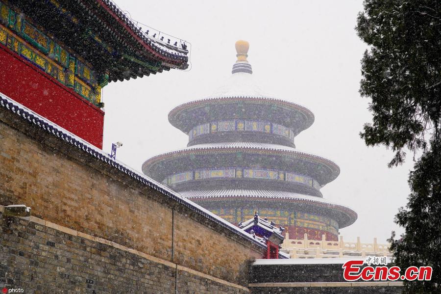 Picturesque scenery of the Temple of Heaven in snow in Beijing, Dec. 13, 2023. (Photo provided to China News Service)