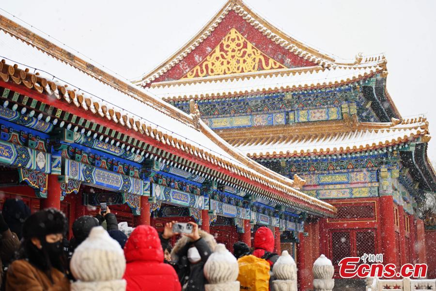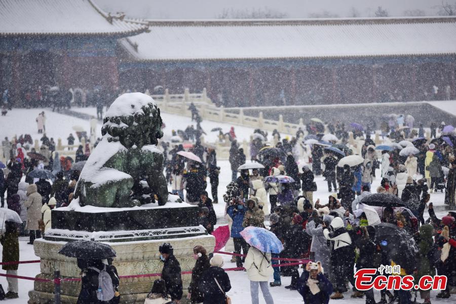 Tourists visit the Palace Museum in snow in Beijing, Dec. 13, 2023. (Photo provided to China News Service)