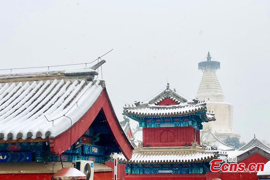 Picturesque scenery of the White Dagoba at Miaoying Temple in snow in Beijing, Dec. 13, 2023. (Photo provided to China News Service)