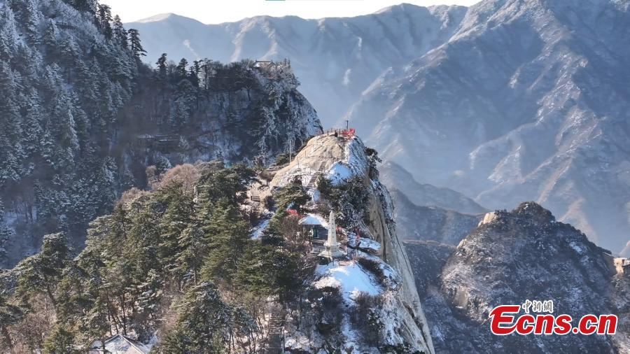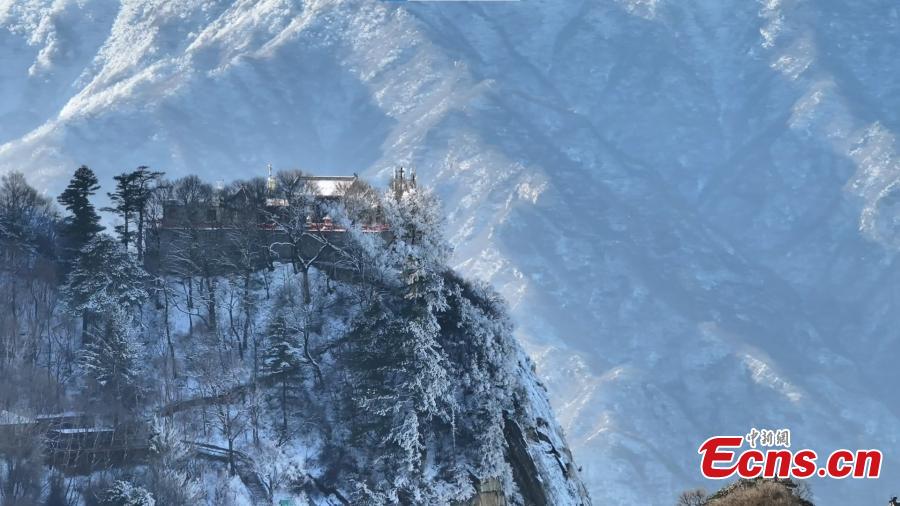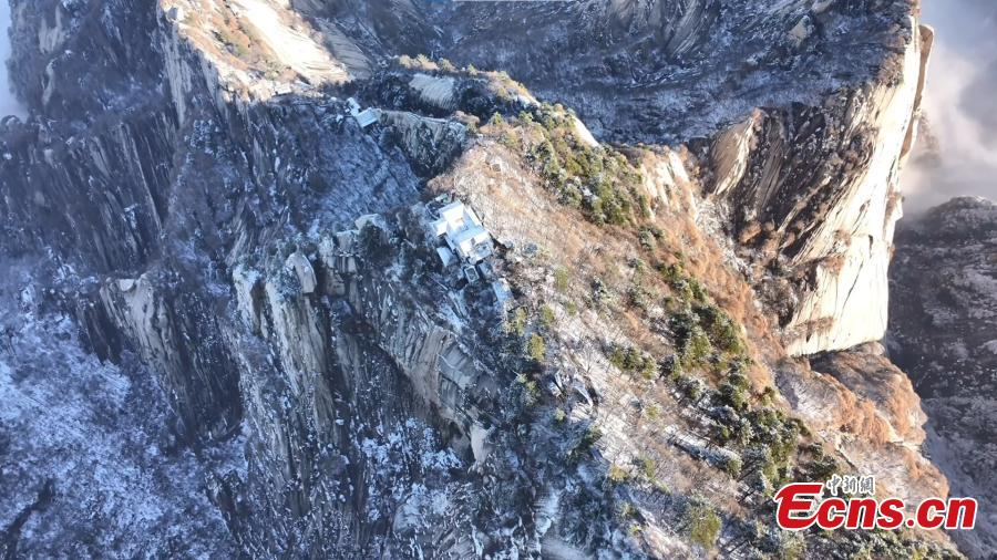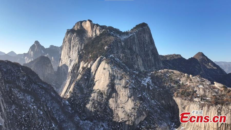 Magnificent scenery of Mount Hua, the West Great Mountain in China, covered by the first snow of this season in northwest China's Shaanxi Province. (Photo provided to China News Service)