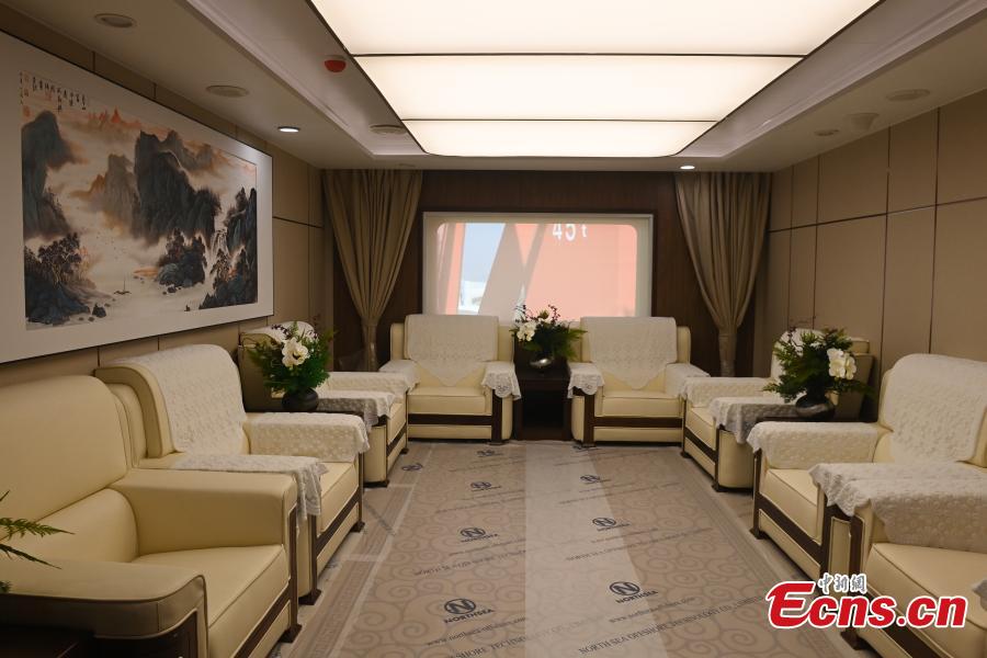An interior view of a meeting room on the vessel "Mengxiang" (or Dream) at Nansha Port in Guangzhou, south China's Guangdong Province, Dec. 15, 2023. (Photo: China News Service/Chen Chuhong)