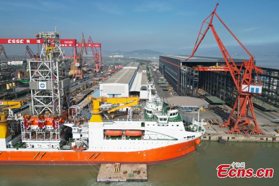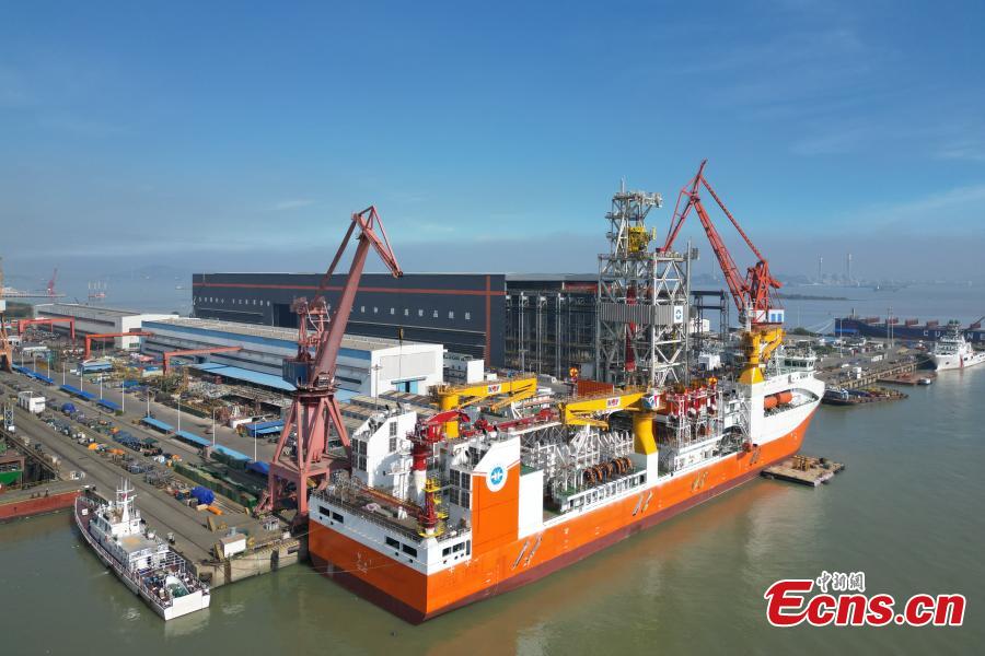The vessel, measuring 179.8 meters in length and 32.8 meters in width, is about 33,000 metric tons in weight and has an endurance of 15,000 nautical miles. It can withstand sea conditions of category 16 typhoons and has the ability to drill as deep as 11,000 meters below sea level. It started a trial run on Monday.