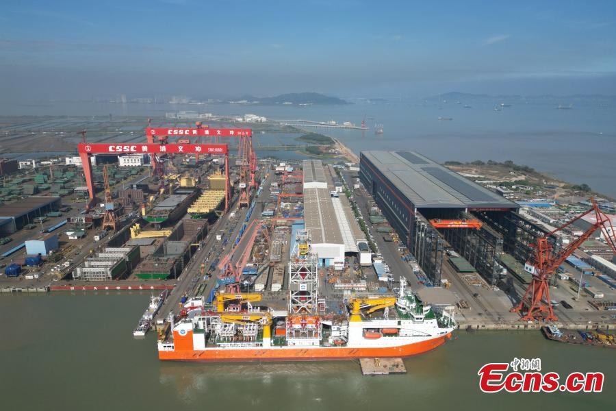 "Mengxiang" (or Dream), China's first ultra-deepwater drilling vessel berths at Nansha Port in Guangzhou, south China's Guangdong Province, Dec. 15, 2023. (Photo: China News Service/Chen Chuhong)