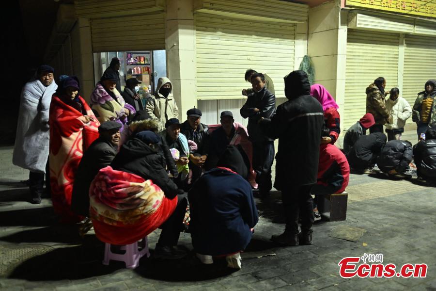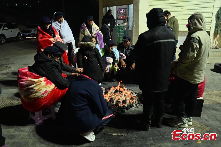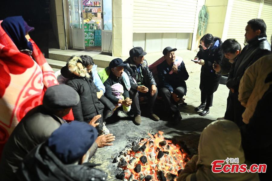 Residents gather around a fire to keep warm on a street after a 6.2-magnitude earthquake hit Jishishan County, northwest China's Gansu Province, Dec. 18, 2023. (Photo: China News Service/Xue Di)