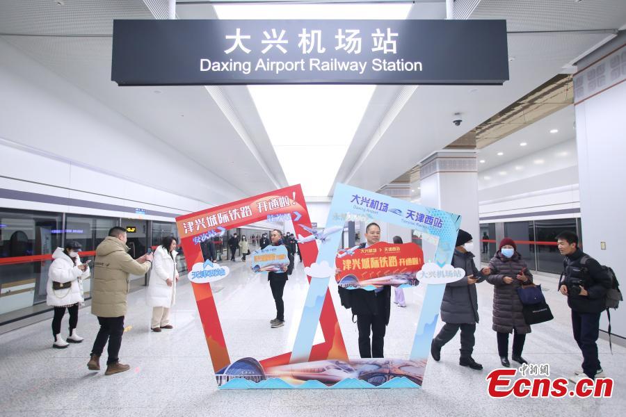 A railway connecting Tianjin with Beijing Daxing International Airport opened on Monday. The line covers six stations, and a 47-km section is new, with a designed speed of 250 km per hour.
