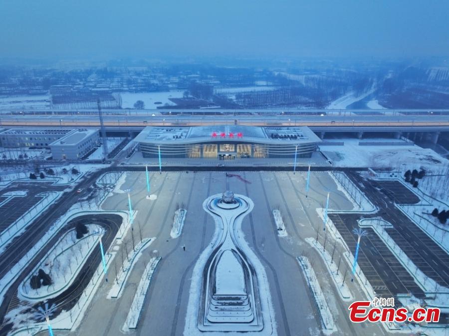 Aerial view of Yongqing East railway station in north China's Hebei Province, Dec. 18, 2023. (Photo: China News Service/Jia Tianyong)