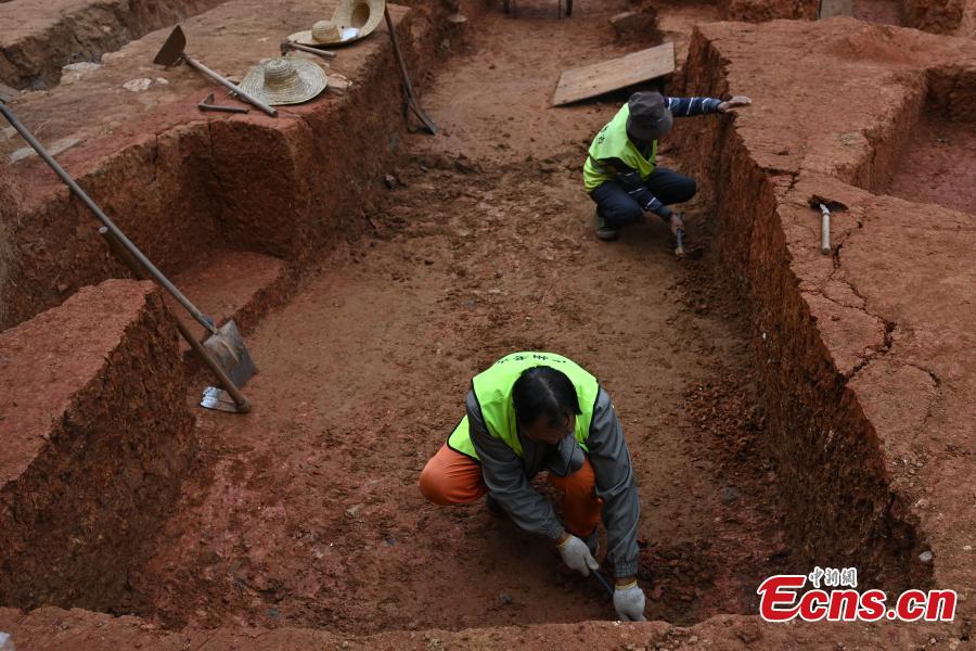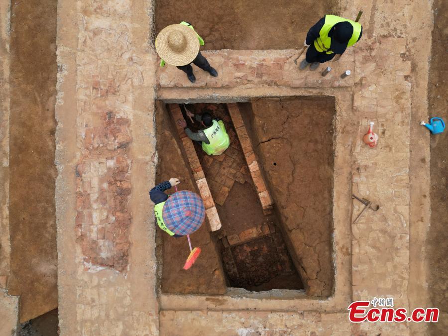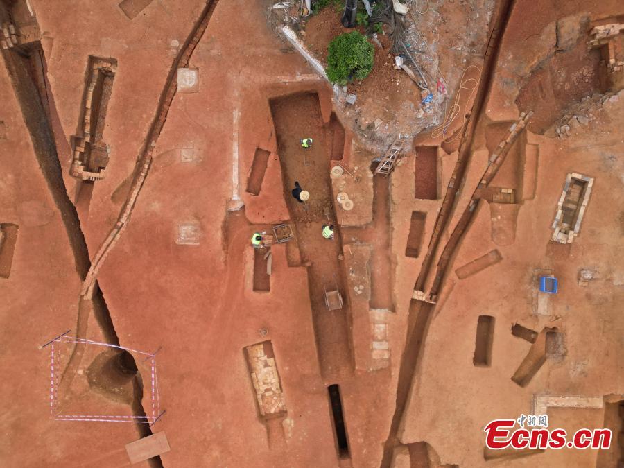 An excavation site of some ancient tombs at a construction site in Guangzhou, south China's Guangdong Province, Dec. 19, 2023. (Photo: China News Service/Chen Chuhong)