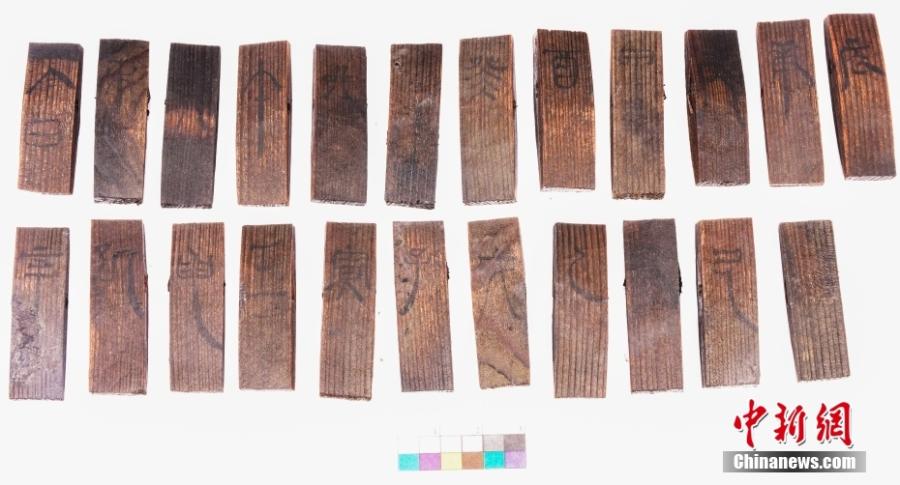 Wood slips are unearthed from a tomb dating back to the Western Han Dynasty (202 B.C.-25 A.D.) in Dulong district of Chongqing, Dec. 5, 2023. (Photo provided to China News Service)