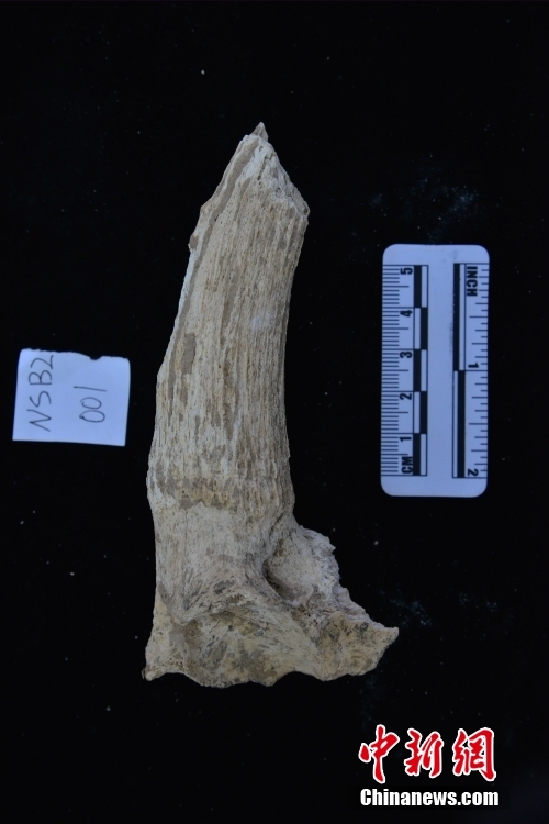 A fossil of an antelope horn is found in Huailai County, north China's Hebei Province.