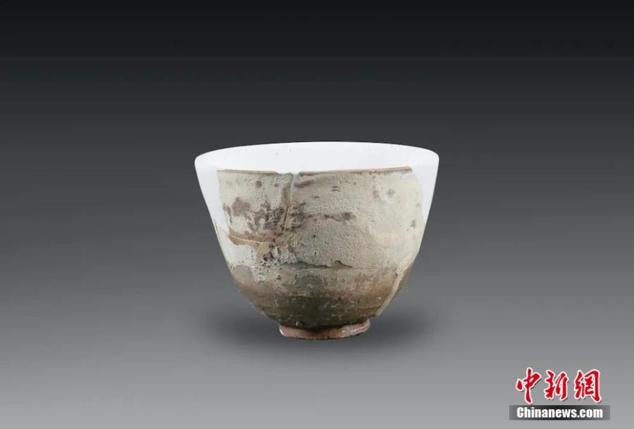 A porcelain cup is unearthed at a porcelain kiln site in Taiyuan, north China's Shanxi Province. (Photo provided to China News Service)