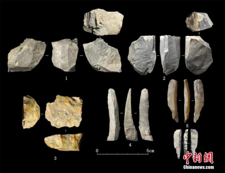 Stone wares are found from the Tanguan Mountain site, earliest Paleolithic age site, with a history going back more than 200,000 years in Meishan city, Southwest China's Sichuan Province, Jan. 10, 2023. (Photo provided to China News Service)