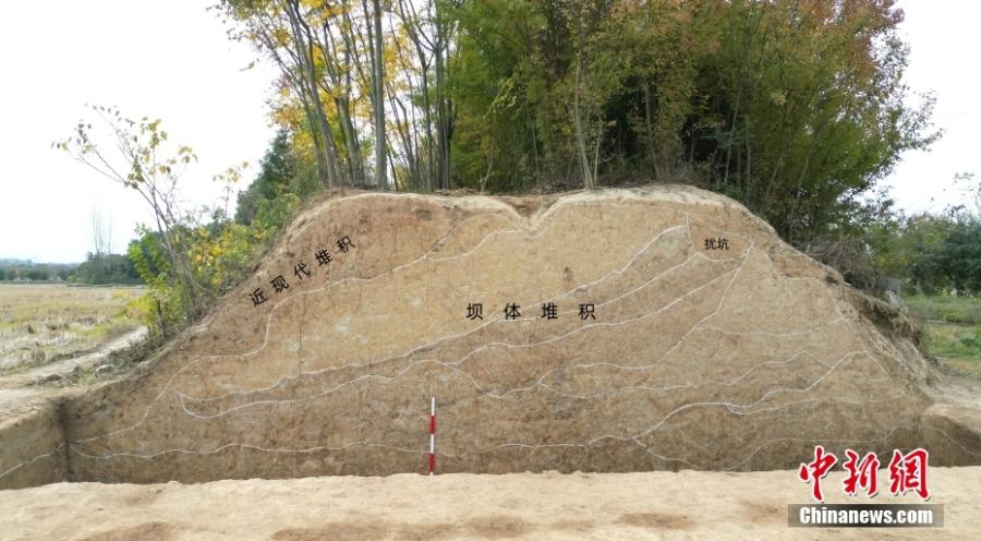 A water conservancy system and the structure of the middle and late phases of the Liangzhu ruins are discovered in east China's Zhejiang Province. (Photo provided to China News Service)