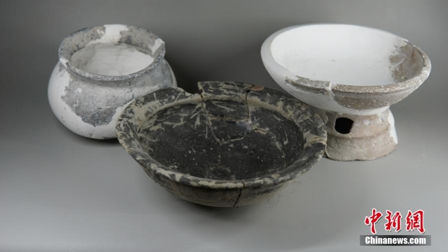 Potteries of the Neolithic Hemudu culture are found at the Chenwang site in Ningbo, east China's Zhejiang Province, Dec. 10, 2023. (Photo provided to China News Service)