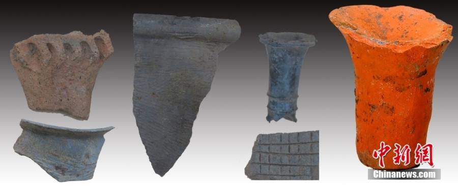 Photo shows potteries unearthed at Donghuaqiu site, east China's Fujian Province. (Photo provided to China News Service)