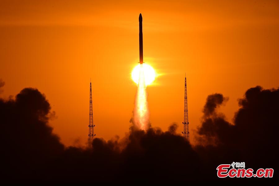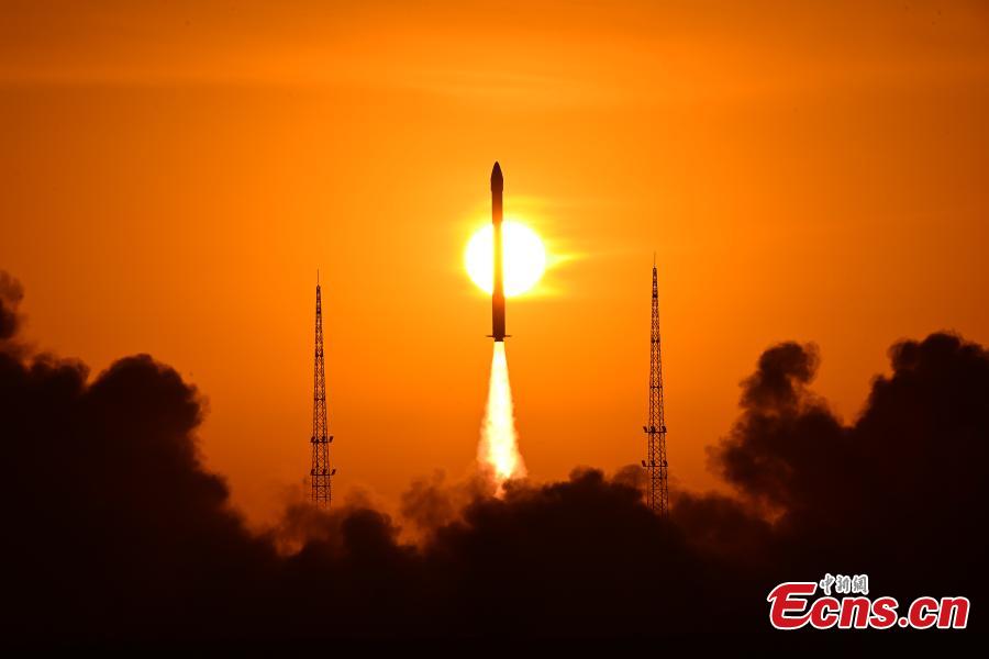 A Kuaizhou-1A carrier rocket carrying the Tianmu-1 meteorological constellation blasts off from the Jiuquan Satellite Launch Center in northwest China, Dec. 25, 2023. (Photo: China News Service/Wang Jiangbo)