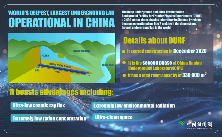 A 2,400-meter-deep physics laboratory in southwest China's Sichuan Province became operational on Thursday, making it the deepest and largest underground lab in the world.
