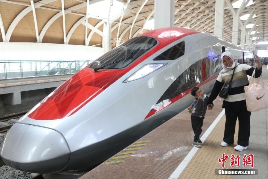 Passengers pose for photos at Halim Station in Jakarta, Indonesia, Dec. 25, 2023. (Photo: China News Service/Li Zhiquan)