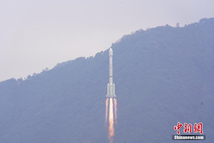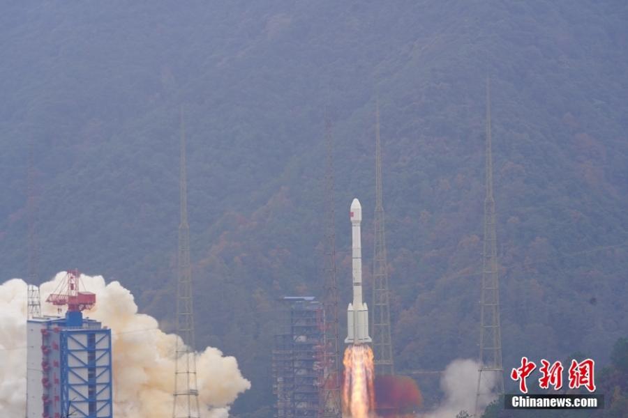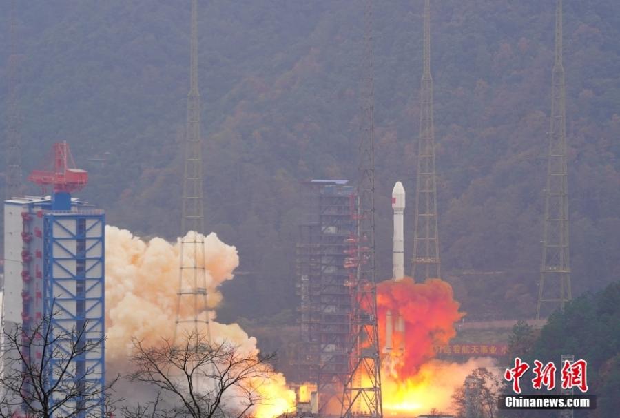 A Long March-3B carrier rocket and the Yuanzheng-1 (Expedition-1) upper stage attached to the carrier rocket, carrying two new satellites, the 57th and 58th satellites for the BeiDou-3 Navigation Satellite System, blast off from the Xichang Satellite Launch Center in southwest China's Sichuan Province, Dec. 26, 2023. (Photo: China News Service/Qiu Lijun)
