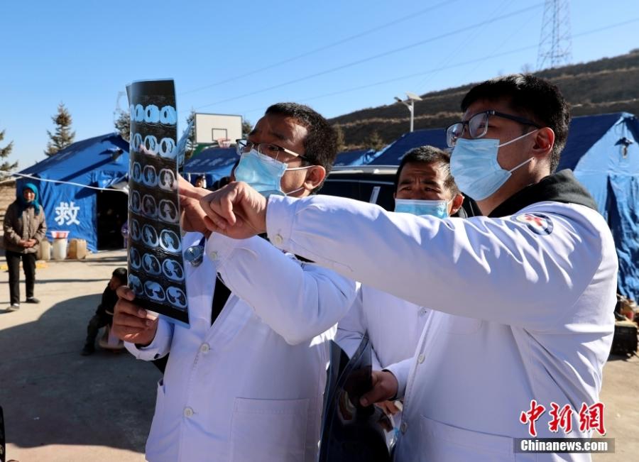 A doctor checks a X-ray film for a patient in quake-hit Haidong City, northwest China's Qinghai Province, Dec. 27, 2023. (Photo: China News Service/Xue Di)