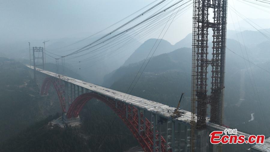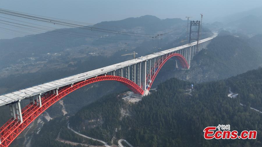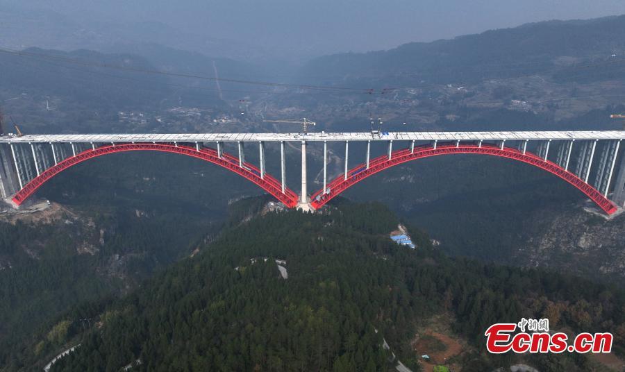 The bridge, part of the Chongqing-Changsha expressway, was connected on Wednesday.