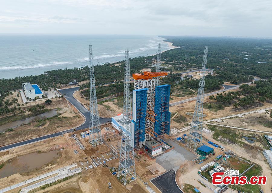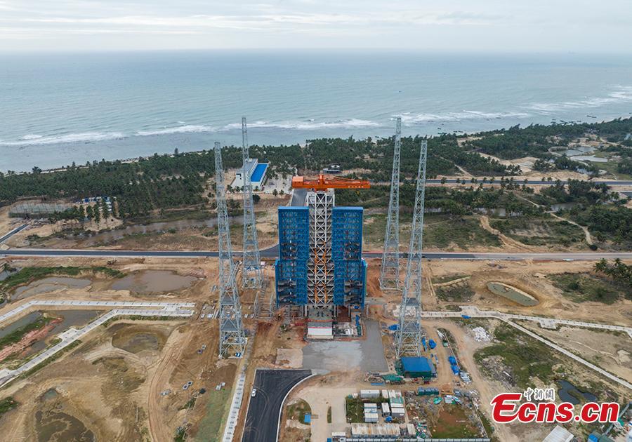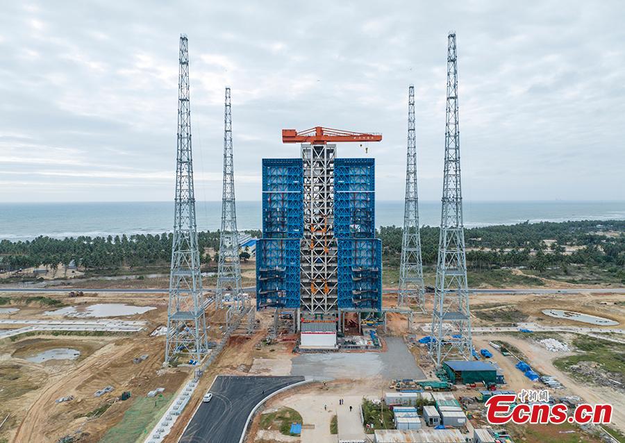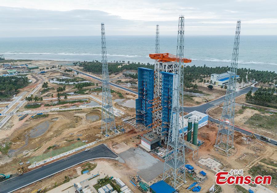 The major structure of China's first commercial launch pad at Hainan International Commercial Space Launch Center is completed in Wenchang, Hainan Province, Dec. 29, 2023. (UAV photo: China News Service/Luo Yunfei)