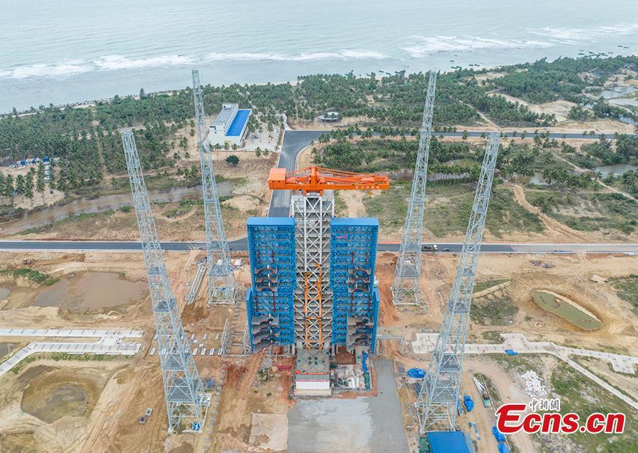 The main structure of China's first commercial launch pad at Hainan International Commercial Space Launch Center is (UAV photo: China News Service/Luo Yunfei)