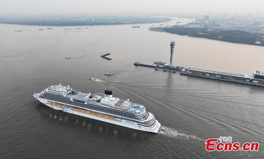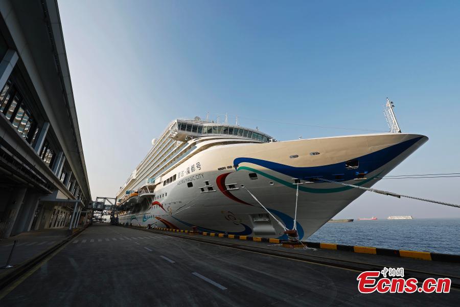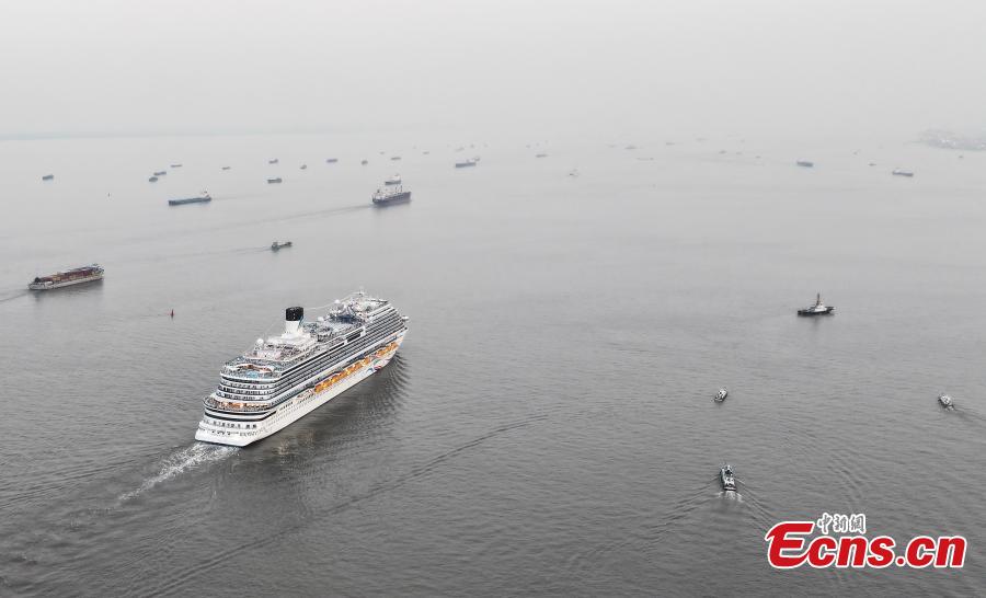 China's first domestically built large cruise ship, the Adora Magic City, is ready to leave the Shanghai Wusongkou International Cruise Port on Jan. 1, 2024. (Photo/China News Service)