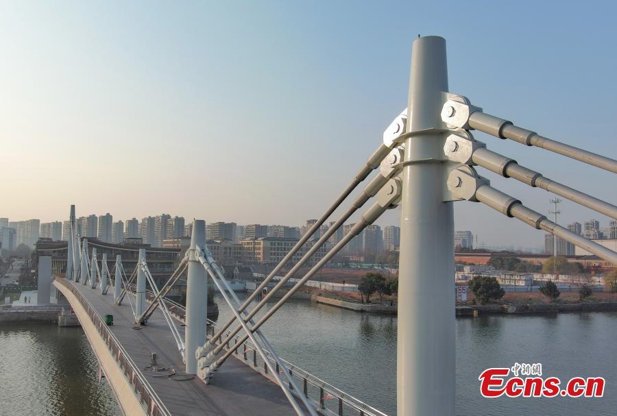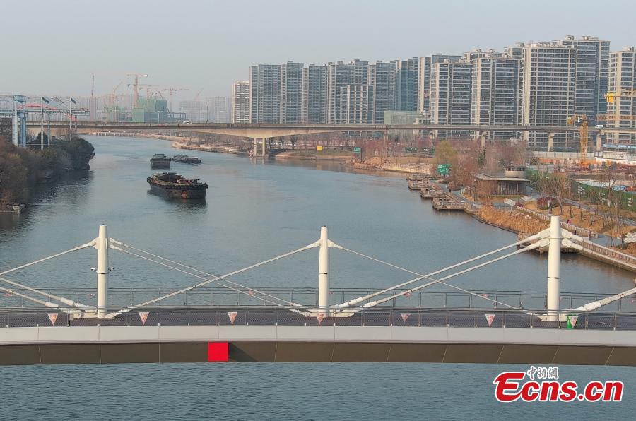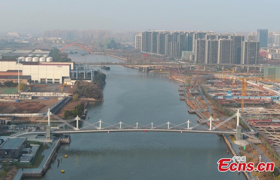 Aerial view of a pedestrian bridge over the Grand Canal in Hangzhou, east China's Zhejiang Province, Jan. 3, 2024. (Photo: China News Service/Wang Gang)