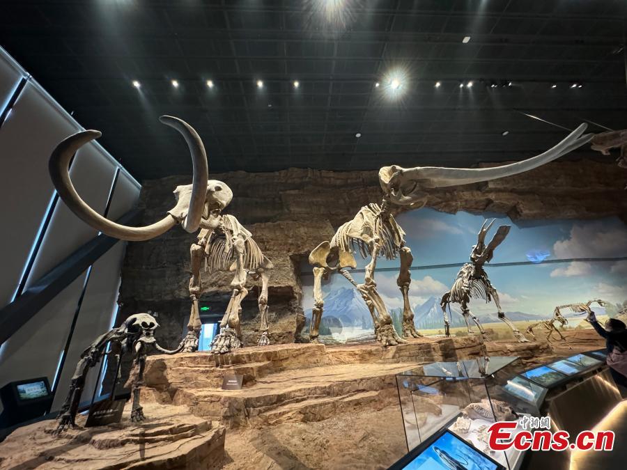 Skeleton fossils of mammoth are displayed at Baoding Natural History Museum, or the Paleozoogical Museum, in north China's Hebei Province, Jan. 3, 2024. (Photo: China News Service/Sun Zifa)