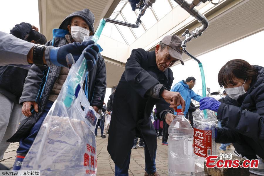 People receive water in Shika in the central Japan prefecture of Ishikawa on Jan. 3, following a 7.6-magnitude earthquake that jolted a wide area on the Sea of Japan coast on Monday. (Photo/Agencies)