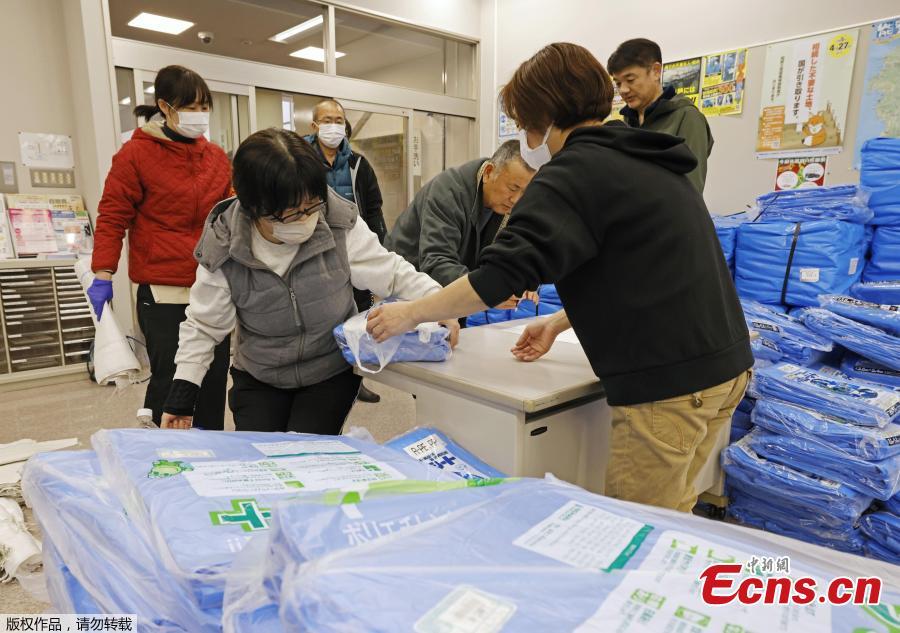 Blue tarpaulins are given out in Shika, the central Japan prefecture of Ishikawa, for people affected by a strong earthquake that jolted a wide area on the Sea of Japan coast, J an. 3, 2024. (Photo/Agencies)