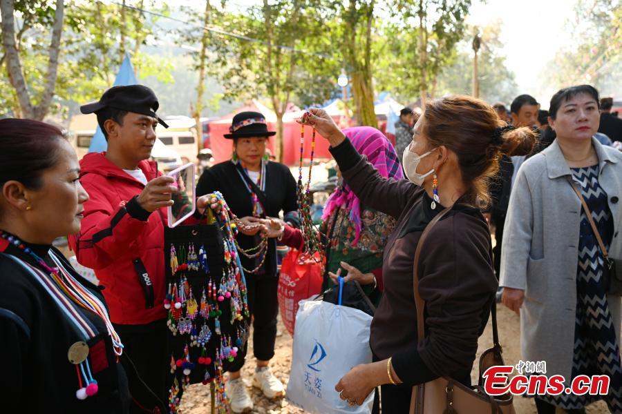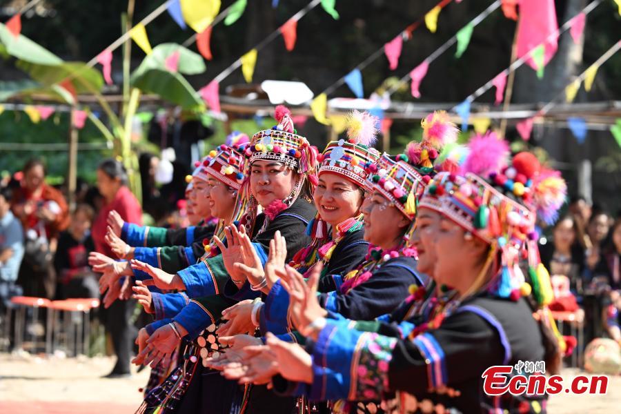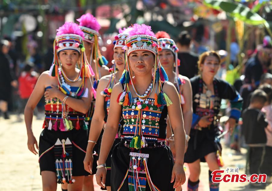 Locals in traditional costumes celebrate the "Gatangpa" festival in Mengla County, Dai Autonomous Prefecture of Xishuangbanna, southwest China's Yunnan Province, Jan. 6, 2024. (Photo: China News Service/Mao Jianjun)