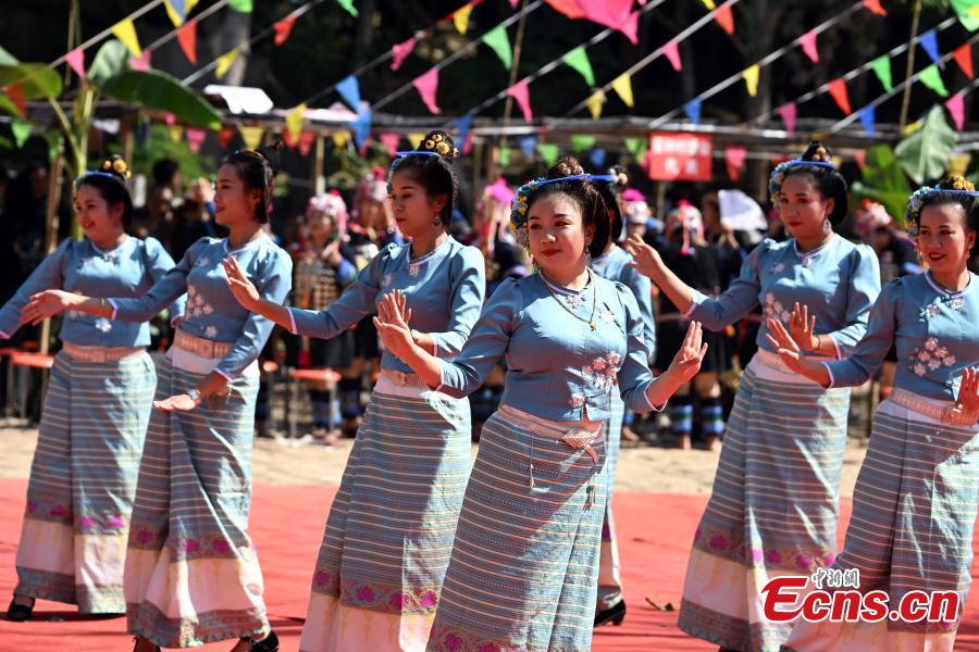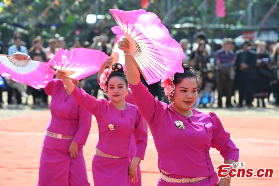 Women in traditional costumes dance to celebrate the "Gatangpa" festival in Mengla County, Dai Autonomous Prefecture of Xishuangbanna, southwest China's Yunnan Province, Jan. 6, 2024. (Photo: China News Service/Mao Jianjun)