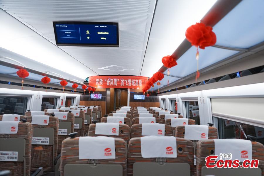 An Interior view of the Fuxing Intelligent EMU train G853 at Xining railway station, northwest China's Qinghai Province, Jan. 10, 2024. (Photo: China News Service/Ma Mingyan)