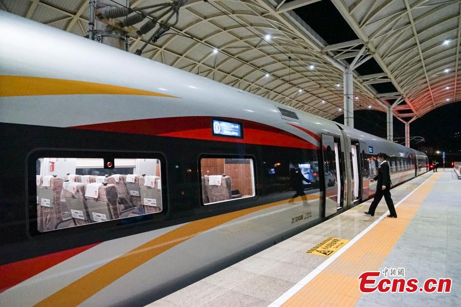 Departed from Wuhai, the first Fuxing Intelligent EMU train linking central China and the Qinghai-Tibet Plateau was put into operation on Wednesday.