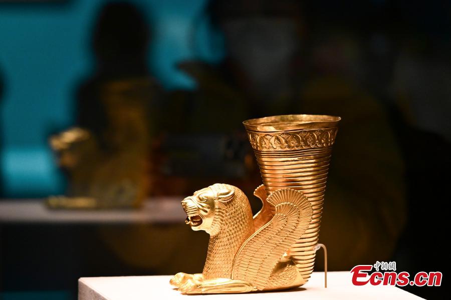 Cultural relics from Iran during the "The glory of the ancient Persia: Exhibition of Iranian cultural relics" are exhibited at the Palace Museum in Beijing, Jan. 10, 2024. (Photo: China News Service/Tian Yuhao)