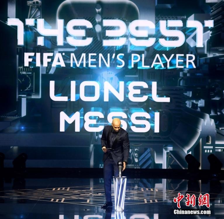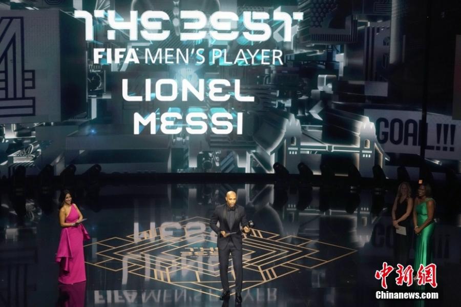 Thierry Henry collects the award on behalf of Lionel Messi who won The Best FIFA Men's Player at The Best FIFA Football Awards at the Apollo Theatre Hammersmith, London, UK, Jan. 16, 2024. (Photo/VCG)