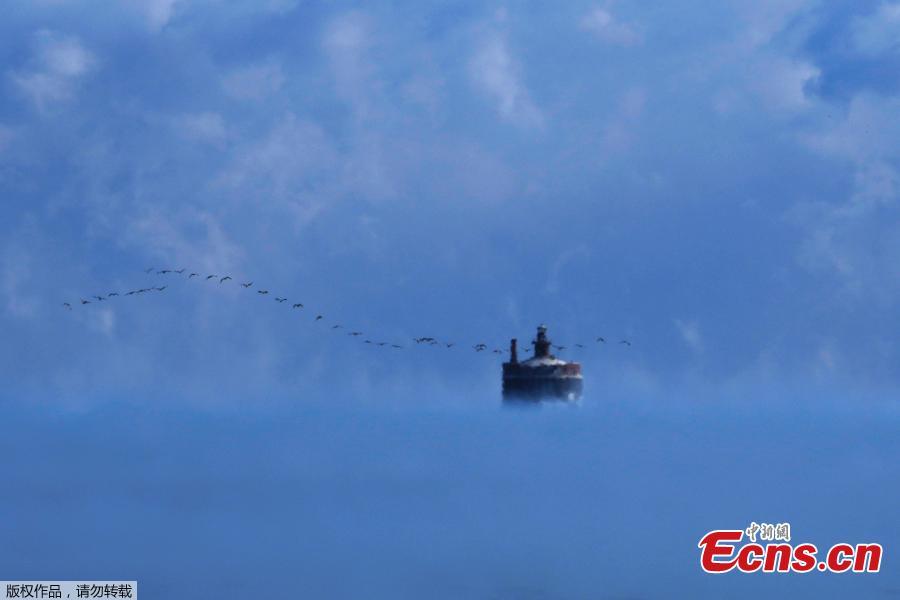 Sea smoke floats around a lighthouse at Montrose beach in Chicago, Illinois, the United States, Jan. 16, 2024. (Photo/Agencies)