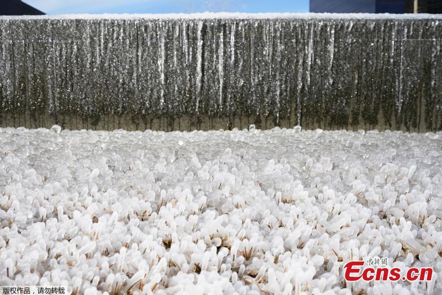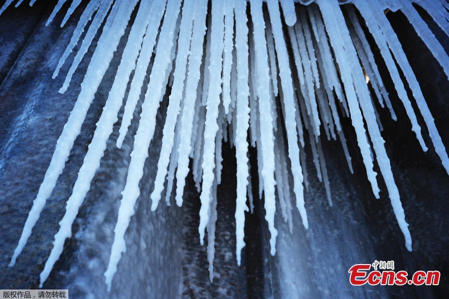 The frozen water spray from the fountain at the front of Thalia Mara Hall in Jackson, make for a decorative apron in Jackson, Mississippi, the United States, Jan. 16, 2024. (Photo/Agencies)