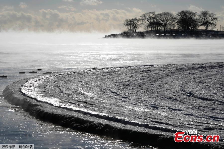 Steam rises off Lake Michigan along the shoreline in Evanston, Illinois, the United States, Jan. 16, 2024. (Photo/Agencies)