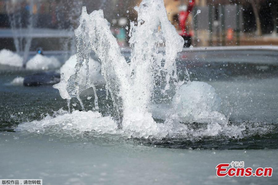 Water dances amid the growing patch of ice in the fountain at the front of Thalia Mara Hall in Jackson, Mississippi, the United States, Jan. 16, 2024. (Photo/Agencies)