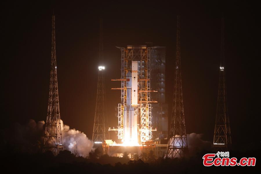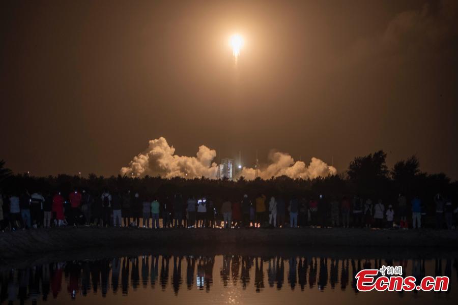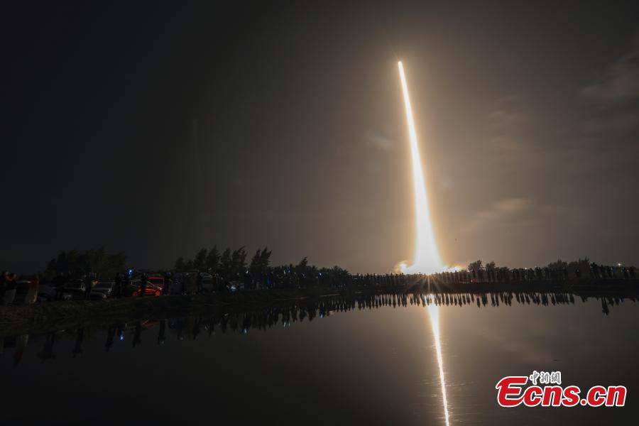 A Long March-7 Y8 carrier rocket carrying Tianzhou-7 cargo craft blasts off at 22:27 Beijing Time from the Wenchang Space Launch Center in south China's Hainan Province, Jan. 17, 2024. (Photo: China News Service/Fu Tian)