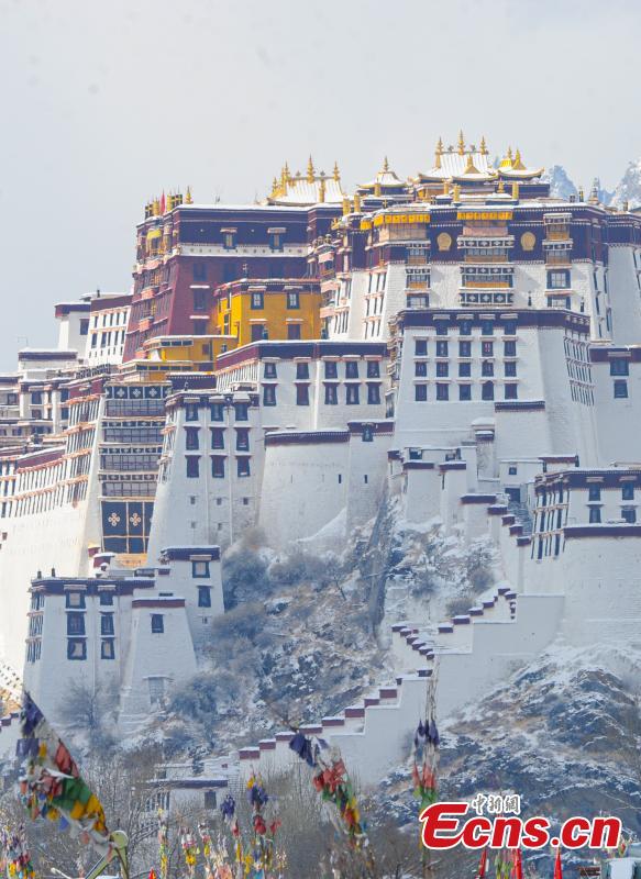 Scenery of the Potala Palace after snow in Lhasa, southwest China's Xizang Autonomous Region, Jan. 18, 2024. (Photo/China News Service)