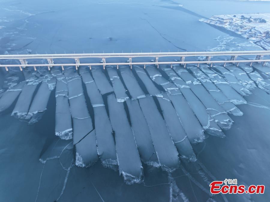 Special landscape of icy waterway appears on the water of Mianchi section of the Yellow River, the second longest river in China, after it froze in sub-zero temperatures in central China's Henan Province. (Photo: China News Service/Yang Shuanchao)