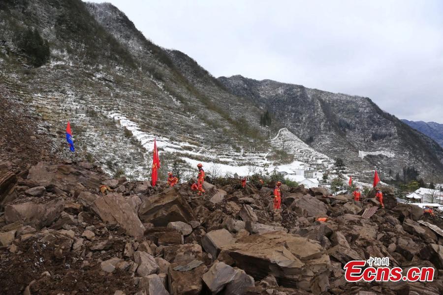 Rescuers search for the missing after a landslide buried 47 people in Liangshui Village, Tangfang Town of Zhenxiong County, Zhaotong, southwest China's Yunnan Province, Jan. 22, 2024. (Photo provided to China News Service)