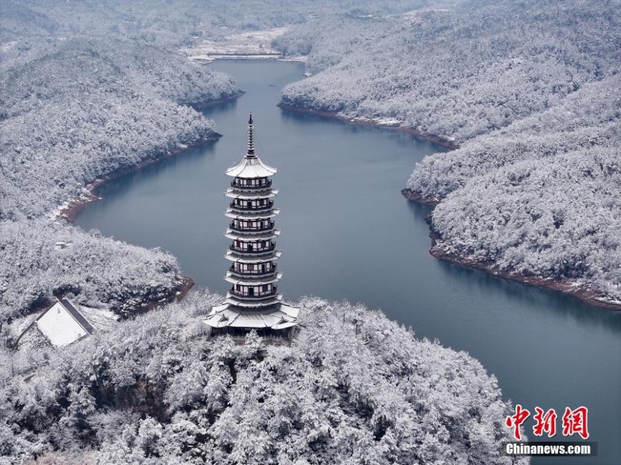 Snow scenery at Langkeng reservoir in Dongyang, east China's Zhejiang Province, Jan. 22, 2024. (Photo provided to China News Service)