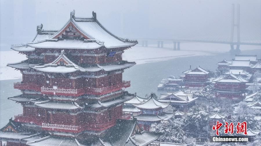 Snow-covered Tengwang Pavilion in Nanchang, east China's Jiangxi Province, Jan. 22, 2024. (Photo/VCG)
