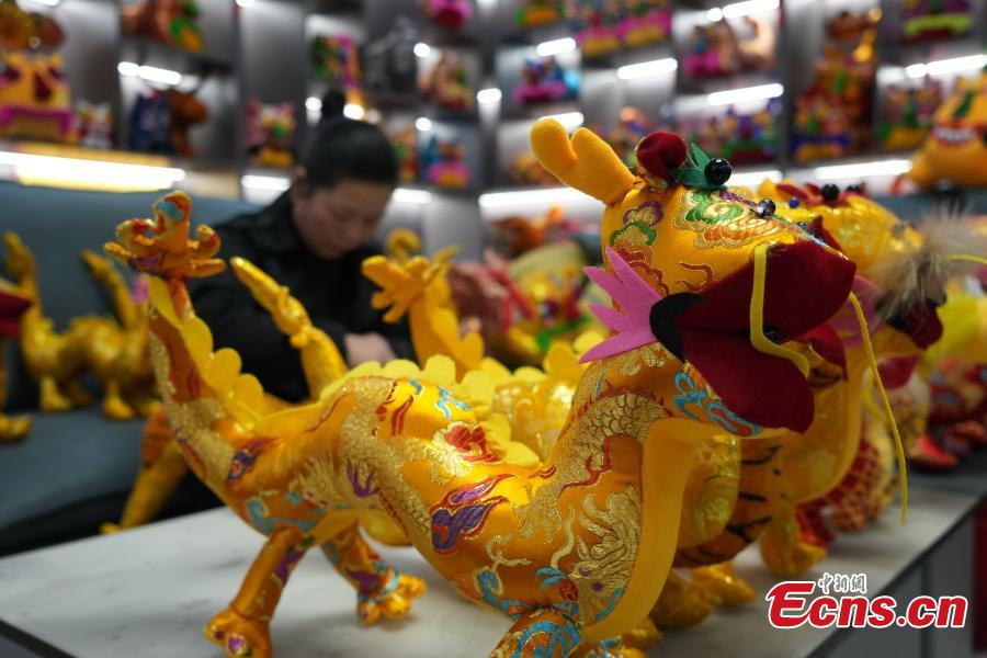 A folk artist makes a cloth dragon, a traditional doll, in Huaiyang, central China's Henan Province, Jan. 21, 2024. (Photo: China News Service/Yang Zhenghua)