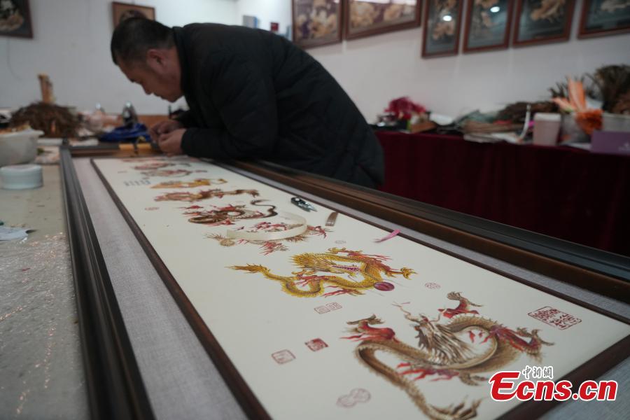 A folk artist creates a dragon-themed reed painting in Huaiyang, central China's Henan Province, Jan. 21, 2024. (Photo: China News Service/Yang Zhenghua)
